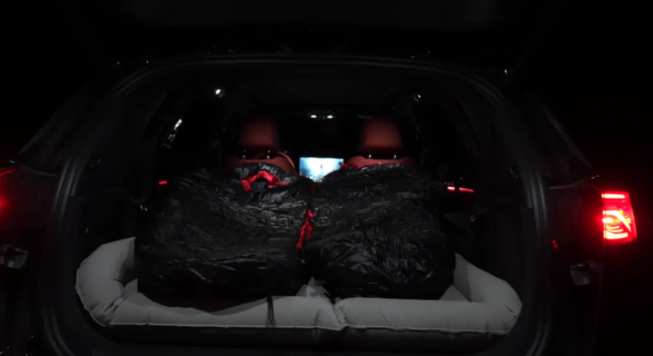 在7座状态下,其后备厢仍能容纳2个20寸登机箱与随身背包,满足短途多人出行的基本需求;当第三排座椅完全放倒后,后备厢容积瞬间拓展至超大尺寸,可轻松装载婴儿车、折叠帐篷、烧烤架、露营床垫等全套装备,甚至能放下儿童自行车这类大件物品;平时出游,它还可以随时随地化身为“大床房”,比起辛苦搭帐篷,更省事、更舒心。